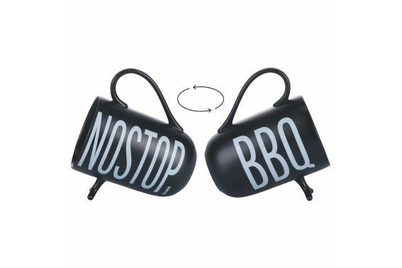 | Bigismore roasting jug Stoneware Polished finish Wide handle Equipped with feet for horizontal positioning Decor with double-sided inscription: NO STOP/BBQ Capacity 1400 ml Size: Ø 12 x h. 18.2 cm Dishwasher safe Color: black |