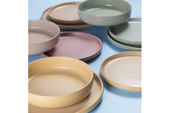Colourful stoneware plates, thick and durable, retain the heat of hot dishes and facilitate serving. They develop the philosophy of colour at the table through bold colours and functional shapes, complemented by glossy or matt finishes. ’