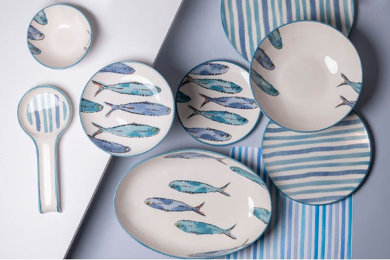 18-piece porcelain and stoneware dinner service, 6 table sets in 2 different decors, Cozumel